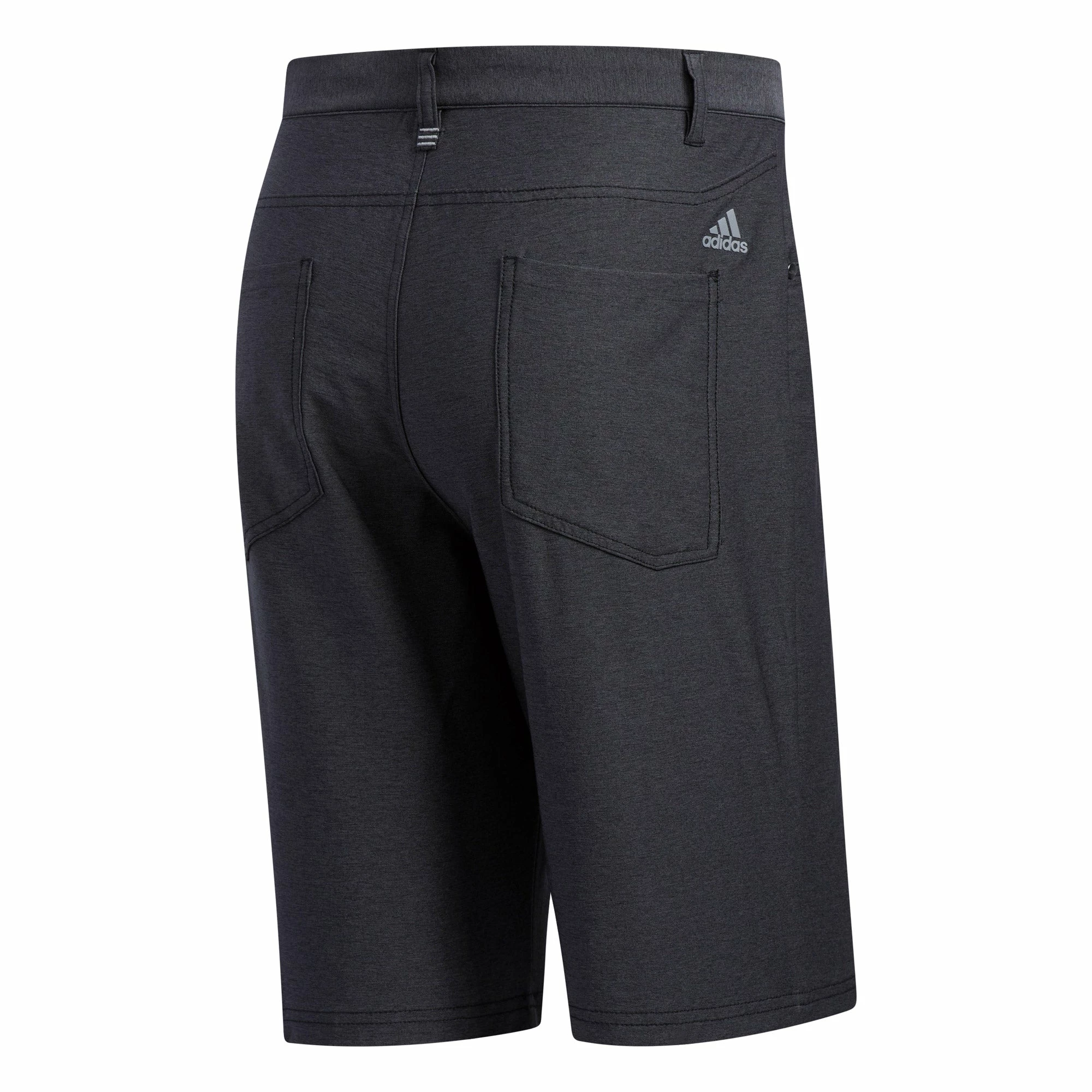 Get versatile style for the course, clubhouse and beyond with the Adidas Ultimate365 Heather Five-Pocket Golf Shorts. These shorts will have you looking and feeling good thanks to the regular fit with a stretchy fabric. There are five pockets that provide great storage for tees, balls, glove and more and an Adidas logo above the back right pocket adds a subtle touch of style.